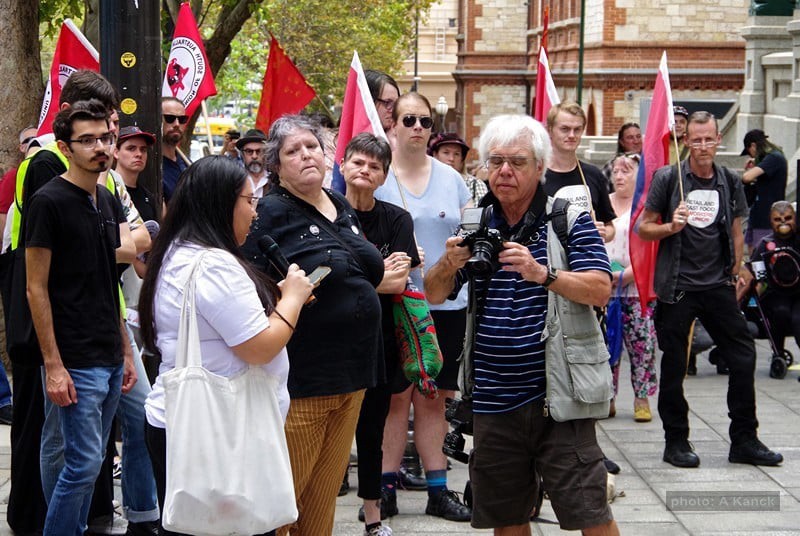 A strong contingent of Adelaide University students attended the rally. Arabella Wauchope, the National Welfare Officer for the National Union of Students (NUS), spoke of her campaign with the NUS to lower the Centrelink age of independence from 22 to 18. This will give thousands of young Australians access to Youth Allowance support, which they are now denied. Even though there are many valid reasons why they live independently, such as an abusive home environment or estranged family ties, the government still recognises them as dependents.