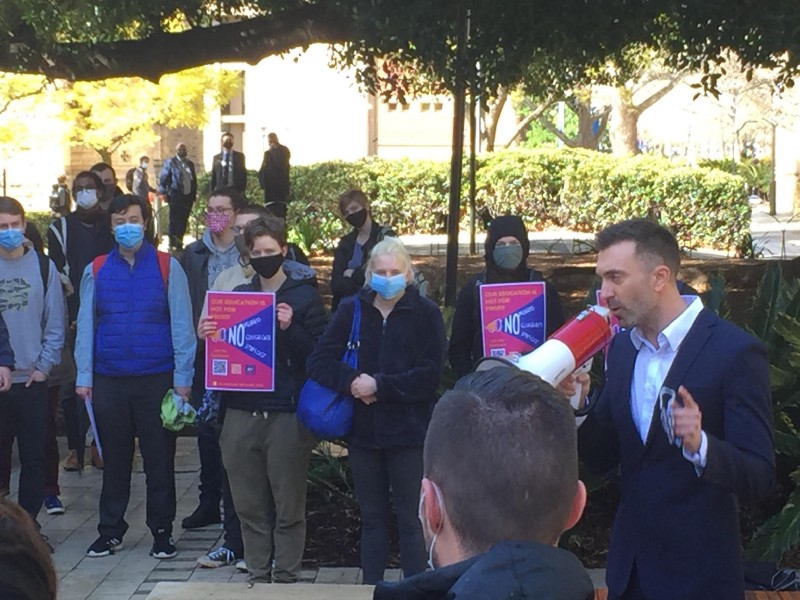 Other speakers at the rally included NTEU branch president Kent Getsinger; student disability activist Orla Breege Spurr; and casual tutor Tamika Glouftsis.