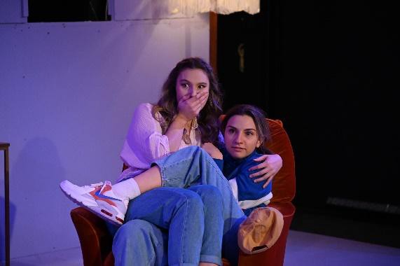 The three bond with one another, soon moving in together and creating a found family dynamic that is central to the play’s true substance. They encounter romantic struggles, as Di becomes infatuated with a girl she sits with at lunch, which the three call “the lesbian table,” and turns to Rose for advice…the promiscuous Rose says she simply asks boys to sleep with her and they say yes, they agree to disagree whether this will work for Di’s situation. Rose and Viv clash, they’re inherently different people and Viv has a tendency to lean more brutal than honest, while Di attempts to play mediator, however, the audience understands that they love each other, in their different ways. The narrative darkens during their final year of uni, after a man breaks into their home and rapes Di, afterwards they begin to sleep together in the living room, and attempt to hold their suffering friend together, urging her to approach survivor organisations. Di, despite her goofy nature, is stalwartly independent, and hates that her friends now act tentatively around her. She breaks after entering the living room one evening and encountering a heavy silence, and alleges that her friends have begun keeping secrets. This claim holds true after Rose reveals she has fallen pregnant, there are six possible fathers, and she wants to keep the baby, while Viv has received her dream job offer in New York. Their lives move forward, and physically away from their rental house, but they are nevertheless irrevocably changed by their experiences and by one another. I could say more, but I’ve already spoiled enough of the plot. Di and Viv and Rose centres around friendship, its changes and how women leading different life courses can stay linked to one another, but the play isn’t cheesy nor overdone. The actresses manage to bring life to their characters. Initially, I foolishly overlooked Rose; I thought she was going to be the archetype of the prim, sheltered but animated girl, yet Vanhakartano infused the character with liveliness beyond the saccharine, one-dimensional aspects we often see. Viv remained closed off for the story’s first half, but she was continually challenged by her friends, and Laity managed to expertly convey emotion through small details, a tone inflection while otherwise facially impassive, or tipping her chin slightly upward, as Viv feigned haughtiness. Vosnakis’ acting as Di encapsulated arguably three different versions of the character, the fresh teenage entering university, the survivor, and her older cynical self.