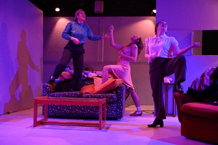 Di and Viv and Rose presented by the Corseted Rabbits collective and hosted by Rumpus, is the Adelaide production company’s take on Amelia Bullmore’s 2011 play of the same name. Rumpus was an extremely welcoming theatre company; after briefly showing our tickets we were pointed towards a spacious, eclectic and couch-filled area, complete with a bar. While my friend and I sipped ciders we listened to the accessibility officer explain the venue’s contact points and clarify show specific warnings, like loud noises, extended dim lighting, triggering themes, and extended synths (we’re about to enter a world still gripped by 80s music after all).