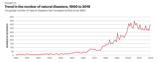 It doesn’t just seem like disasters are getting more frequent, they actually are. A 2020 study by the Institute for Economics and Peace found that the number of extreme natural disasters ‘has increased tenfold since 1960’. The number of people displaced by natural disasters is also rising. This trend is only going to get worse if we don’t act.