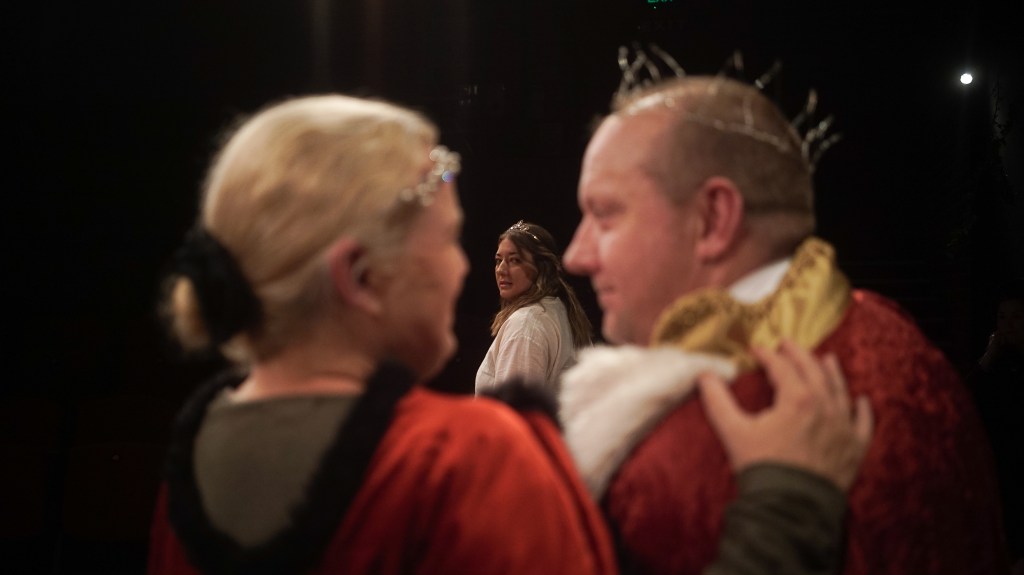 Imogen Deller-Evans’ passion for this material is obvious in her careful and loving direction. The Little Theatre is, shockingly, little, with a thrust stage. This space is utilised to best effect when actors direct dialogue to different parts to the audience. Kissing the Witch is Deller-Evans’ directorial debut, yet their direction is distinctly mature.
