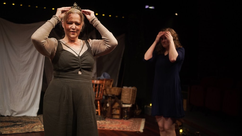 The small group of actors are what ultimately shine through in this production. They commit fully to every character they portray, bringing new quirks to each fresh face. Sam Wiseman as the Man transitioned seamlessly between bumbling idiot and threatening merchant. Each of Michelle Hrvatin’s (Third Woman) characters are angry, but she succeeds in making these angers feel different. Ellie-May Enright (Second Woman) is particularly notable as an innocent princess, turned runaway, turned beast. Susan Cilento’s (First Woman) stint as the Donkey is of particular note. The dedication to her portrayal of the Donkey’s death had the audience in stitches. Her more human roles are approached with the same tenacity.