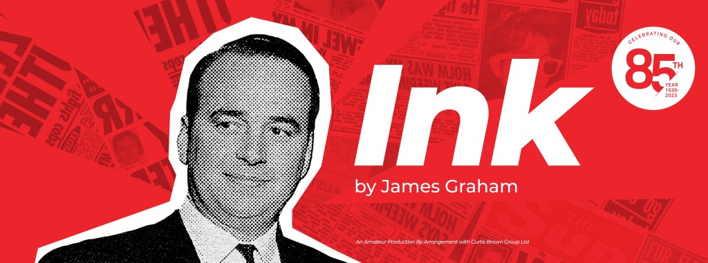 James Graham’s Ink is the final production of the Theatre Guild’s landmark 85th Season and will open at the University’s intimate and unique Little Theatre October 12th at 7:30pm. Ink is a theatrical adventure that delves into the world of journalism, media, and the birth of the infamous British tabloid newspaper, The Sun. Bringing this complex story to life presents a unique set of challenges and opportunities, both of which excited co-Directors Robert Bell and Rebecca Kemp. The story of Ink is a fictional telling of a factual event, and as Murdoch states in Ink, “All the best stories are true.”
